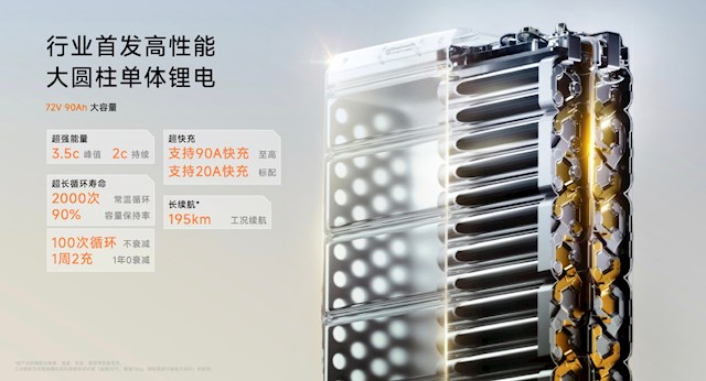 而200车型搭载最大功率16kW的电机,极速110km/h,配备新能安72V90Ah大单体电板,工况续航高达195km!