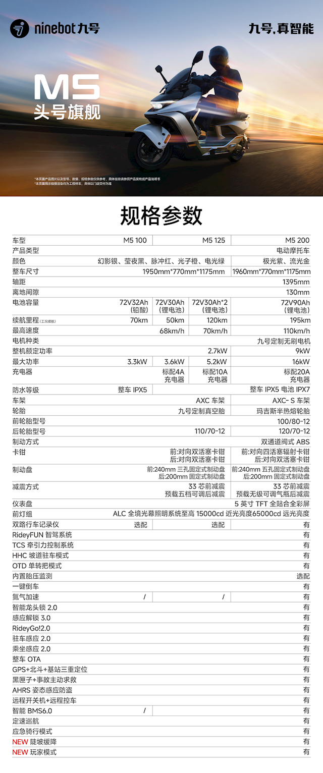 其中100与125已开启销售,100铅酸电板版块首发价7499元,125单电版首发价为9399元,双电版首发价为12399元,而200和M5P初号机联名款将于2025年11月上市。