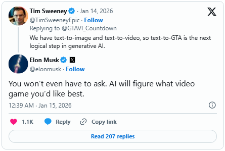 比年来,东说念主工智能(AI)时代以惊东说念主速率迭代升级开yun体育网,从笔墨生成、图像创作到视频制作,再到自动驾驶、机器东说念主利用,其影响力已渗入至五行八作。如今,游戏产业正成为AI时代大鸿沟落地的又一前沿领域。近日,特斯拉首席执行官埃隆·马斯克(Elon Musk)在酬酢媒体的一番言论,将这一趋势推向公论焦点。