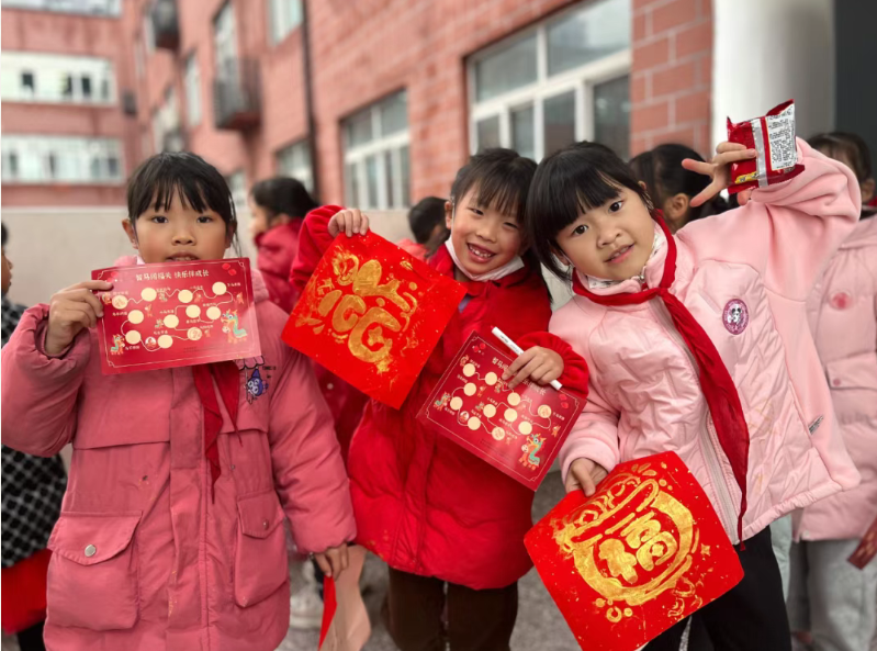 两江新区民意佳园小学以“集福闯关”为主题,让学生化身“集福小达东谈主”,参与闯关挑战。在语文闯关区建造的“小马认读”要领,学生们立时抽取印有拼音和汉字的卡片并高声认读,不但认了字还熟谙了抒发智商;在“马运亨通红运球”要领,学生们熟练背诵《咏鹅》《春晓》《赤子钓鱼》等古诗,顺利闯过诗词关。