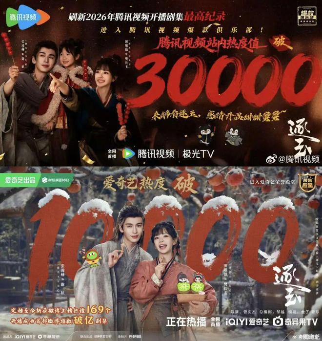 3月6日,由张凌赫、田曦薇主演的古装电视剧《逐玉》在腾讯视频和爱奇艺同步开播,平台公布的热度值一齐走高。上线三天,该剧在腾讯视频站内热度即打破29000,刷新平台2026年剧集热度记载;同期爱奇艺热度打破9500。放置发稿,《逐玉》腾讯视频站内热度已打破3万,爱奇艺热度已打破1万。