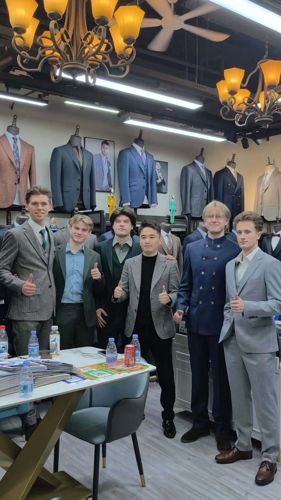 6名挪威小伙在张国维店里买到了清闲的定制西服。南外滩量身定制中心供图