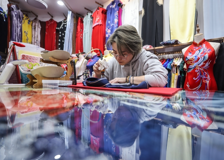 传承:旗袍店里玩“拼豆”
