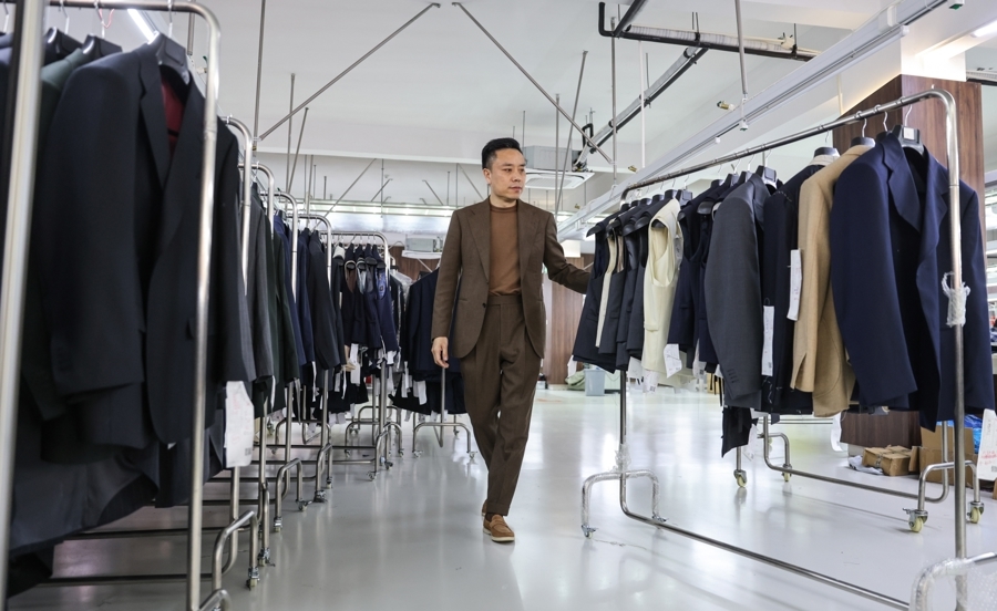 在毛永康地方的新源制衣厂,一块布料要成为一件衣服,会资格多谈裁与缝的工序,直到终末一位师父翻找每个边缘,摘掉守密线头;数十公里外,南外滩量身定制中心,它们被小心地交到宾客手中。下一站,这件衣服会出当今北好意思、欧洲,抑或全宇宙任一边缘的街头。