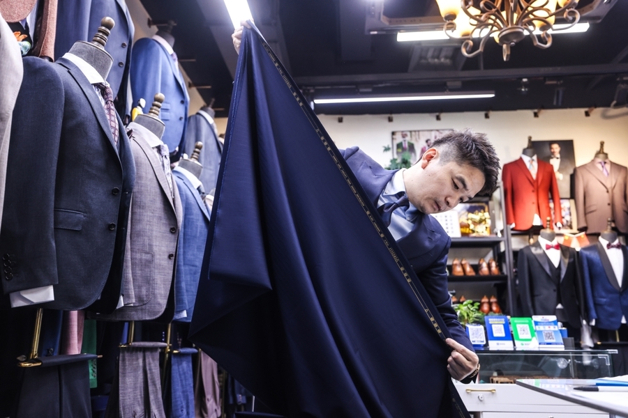 这也曾是他第五次带一又友来这家店定制西装了。“Jerry作念的衣服很好,比在咱们国度定制低廉多了。他东谈主也很好,每次我带一又友来,他们都很清闲。”一周前,安德斯家乡的一又友们来上海旅游,第一站就到南外滩量身定制中心找Jerry,小伙子们不甘人后定西服,“其中一个有2米多高,还订了一对鞋。”